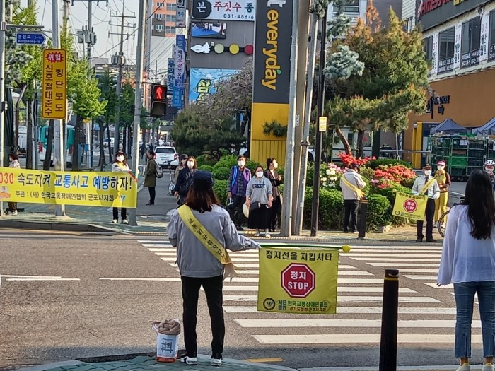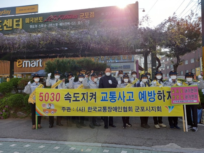 (사)한국교통장애인협회 군포시지회(지회장 장석규)는 2021년 04월 20일(화)오전7:30~8:30분까지 군포시 당동우체국앞사거리에서 신호등지키기 교통봉사 및 차량으로 교통안전캠페인방송 순회홍보를 하였다.