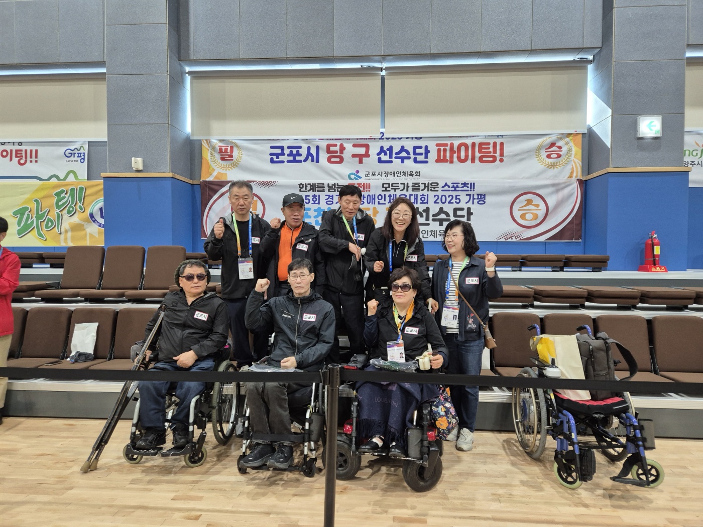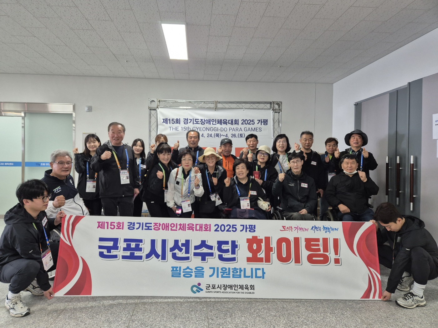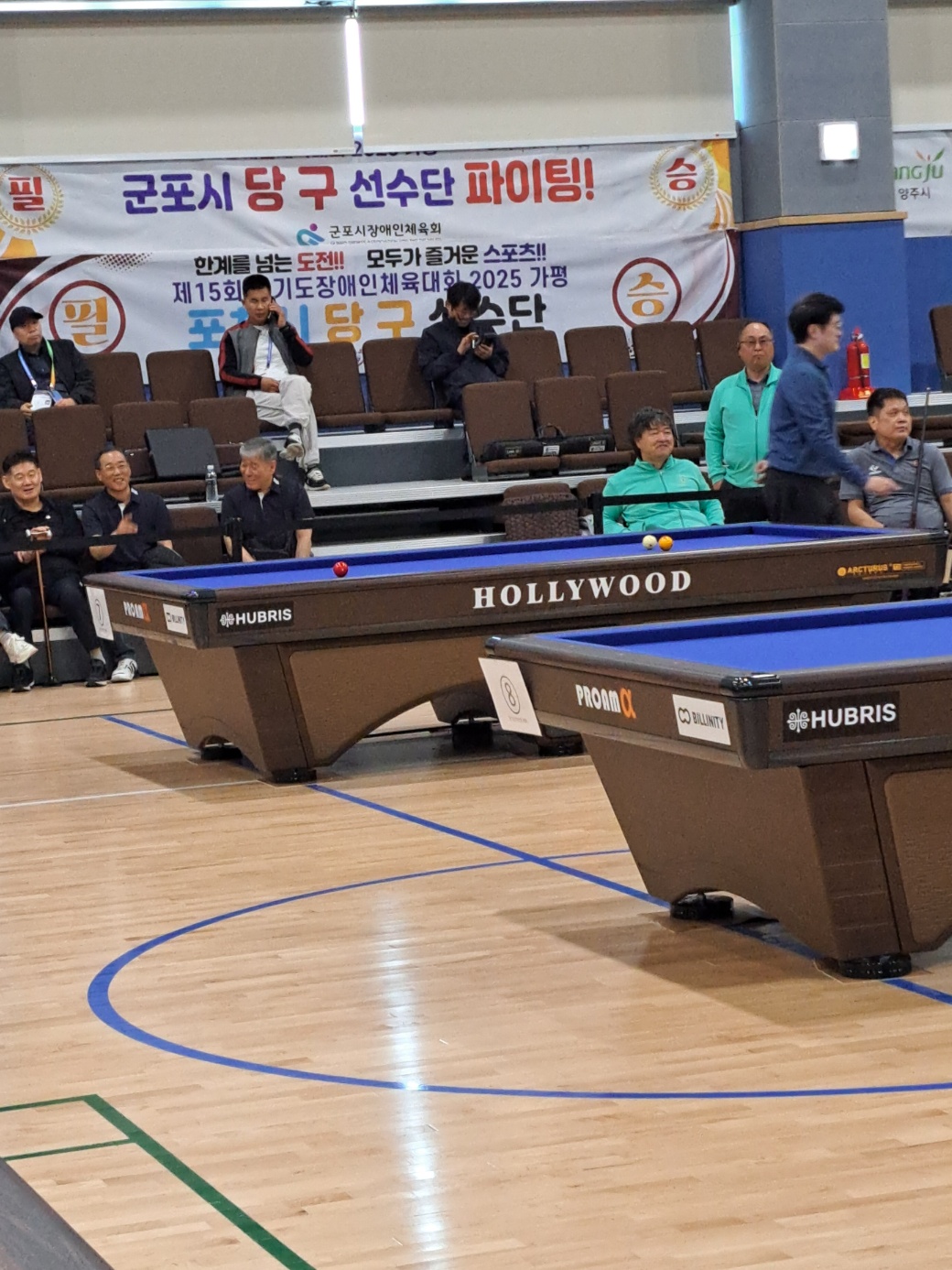 4월24일~26일, 2박3일 일정으로 제15회 경기도장애인체육대회가 가평에서 열렸습니다. 군포시신체장애인복지회-군포시장애인당구협회에서는 선수9명과 함께 감독,코치,보호자 등 총13명이 가평에 다녀왔습니다. 당구대회는 조종면에 위치한 조종반다비체육센터에서 열렸으며 저희 선수들은 최선을 다해 경기에 임하며 그동안 닦은 기량을 펼쳤습니다. 장애인, 비장애인 모두의 삶의 활기를 느낄 수 있었던 장이였습니다.